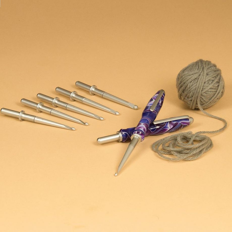 Crochets interchangeables livrés en coffret rangement. Manche résine acrylique (préciser coloris et modèle souhaité)