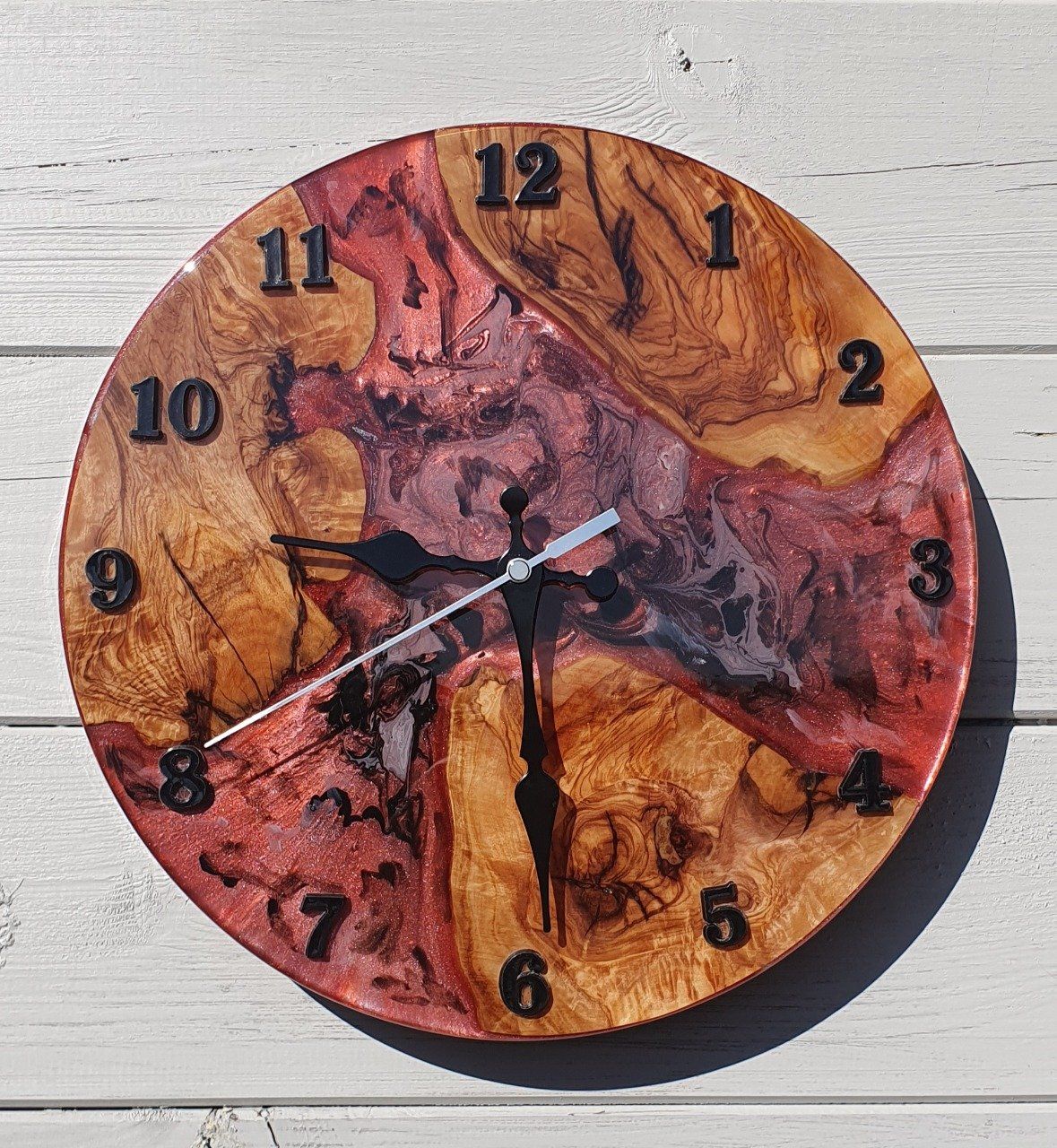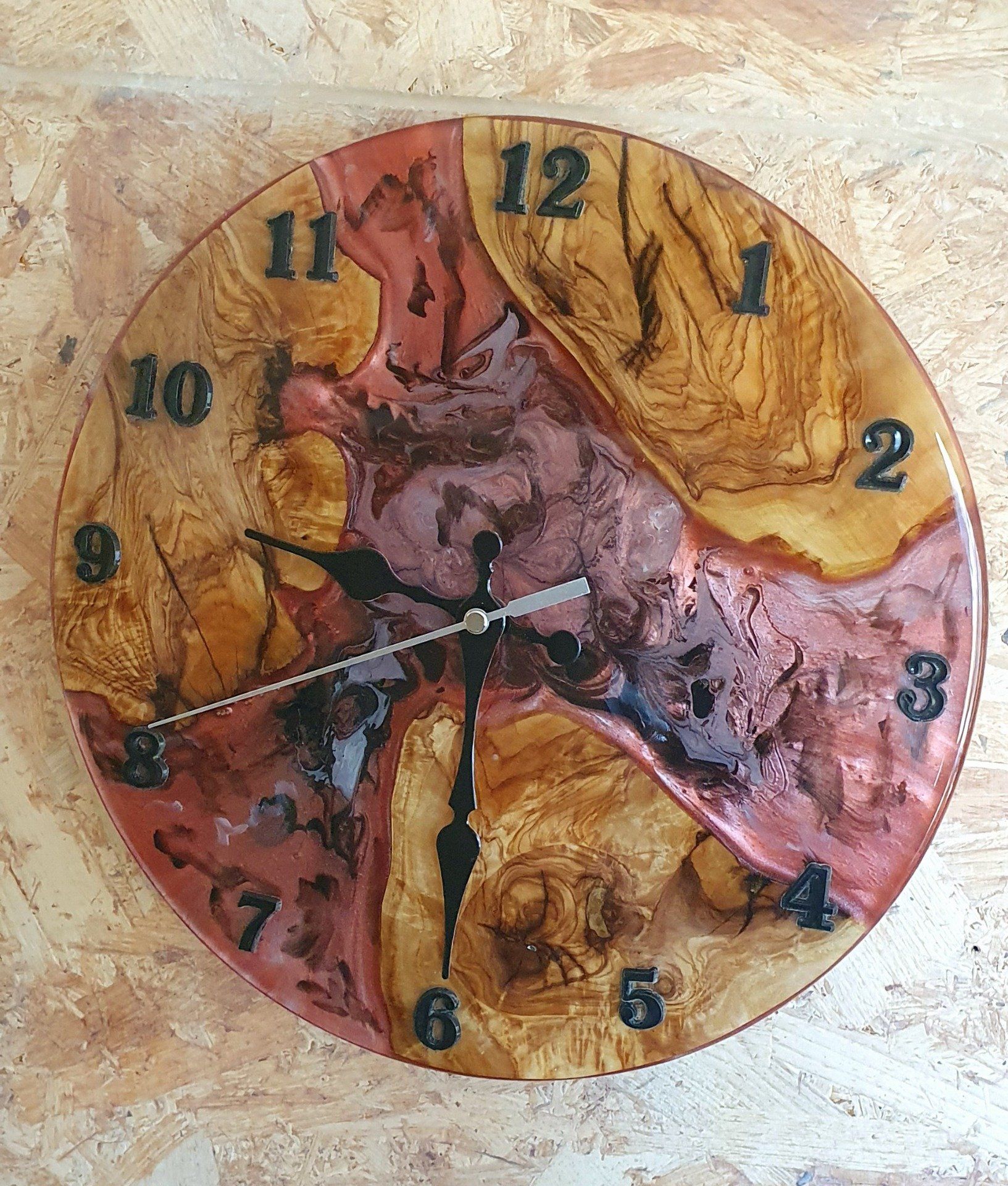 Horloge resine et bois d'Olivier