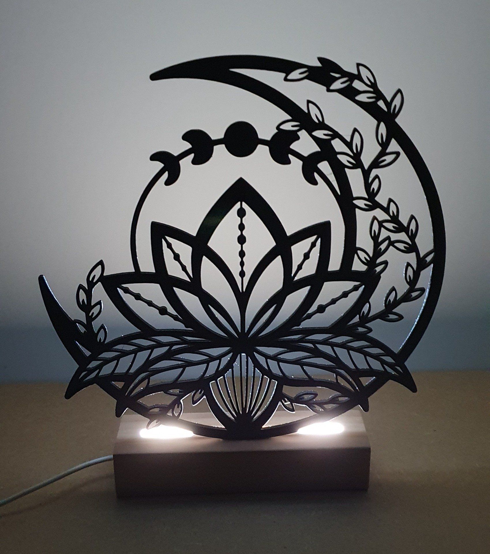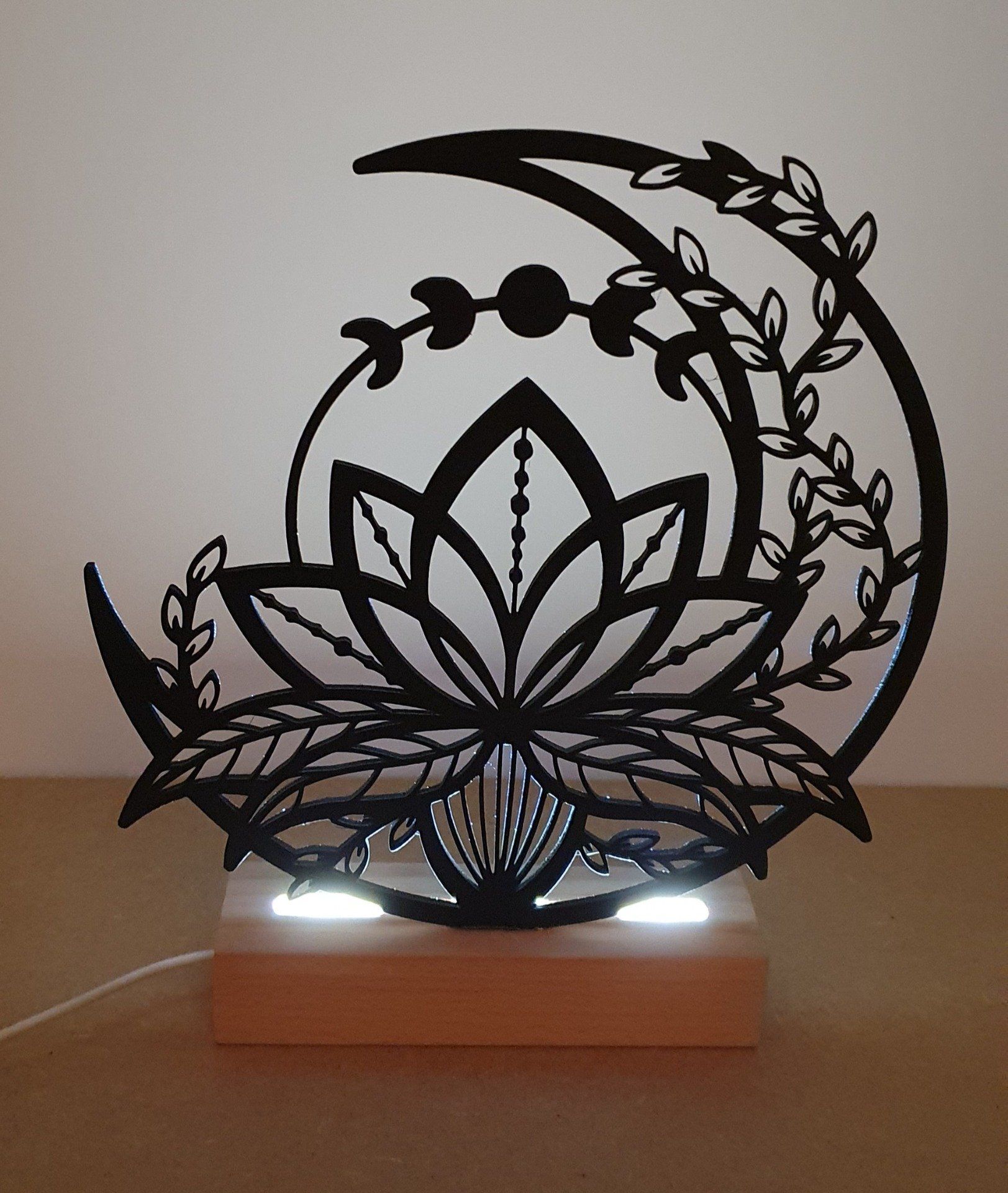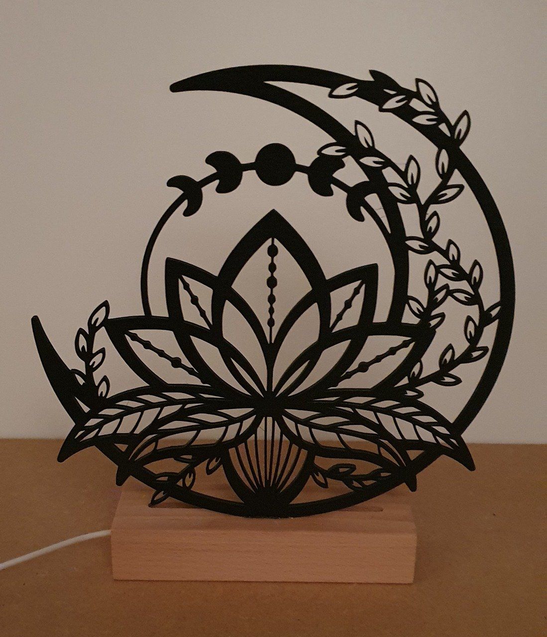 Lampe d'ambiance ou de chevet. Découpe laser avec support éclairage leds. Alimentation USB. Dimension 300 x 300 environ