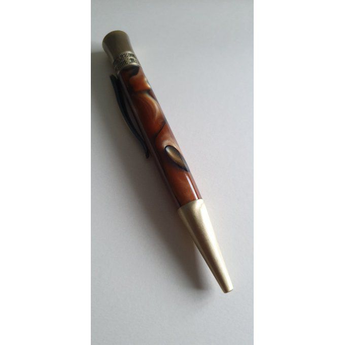 Stylo artisanal Glacia en résine caramel. Finition cuivre antique. Recharge standard Parker