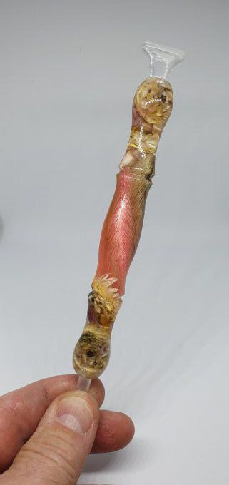 Stylet peinture diamant hybrid en résine transparente avec inclusion de fleurs et "queues de lapin"